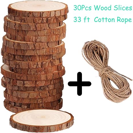 Lot de 30 rondelles de bois naturel pour peinture à faire soi-même, 6,1 - 7,